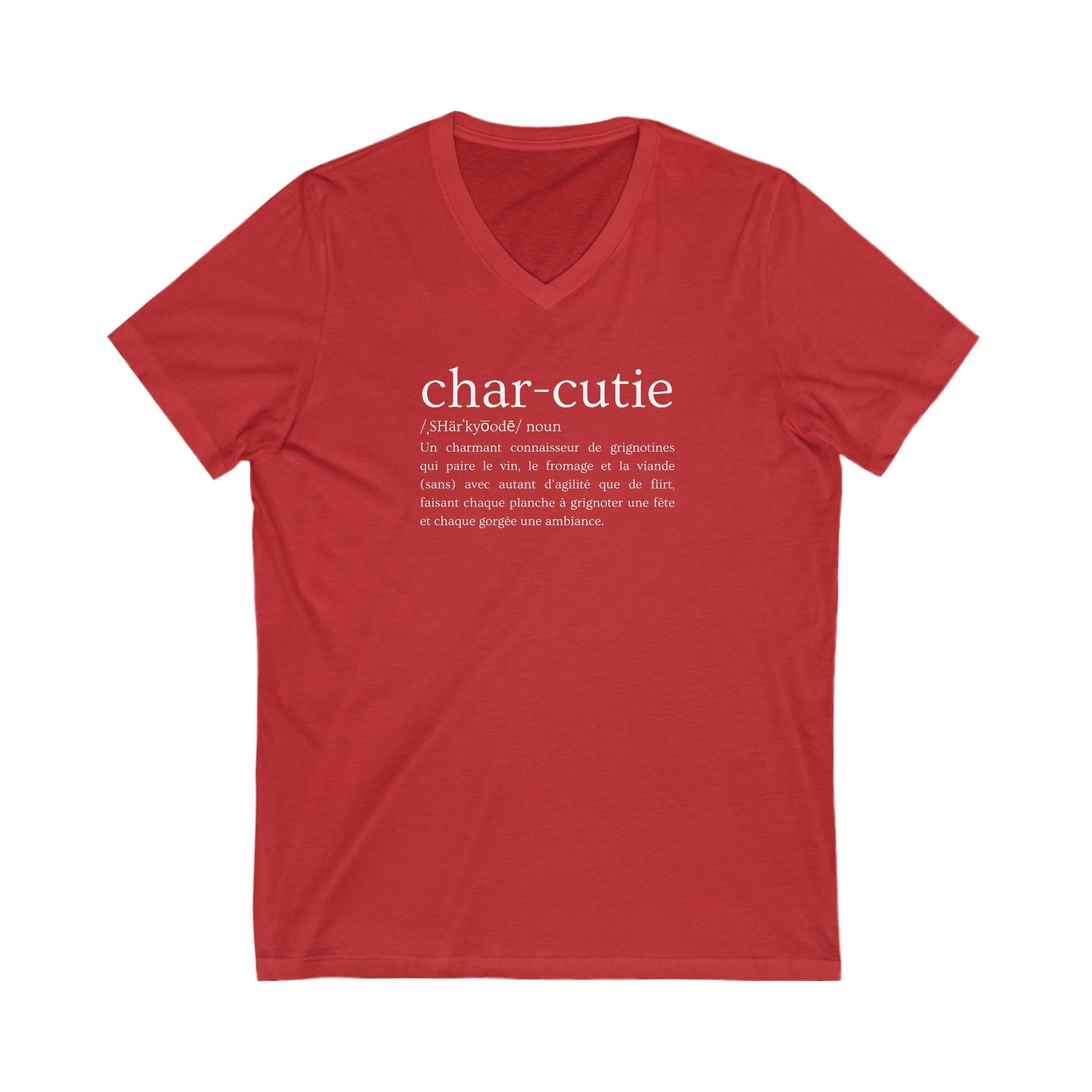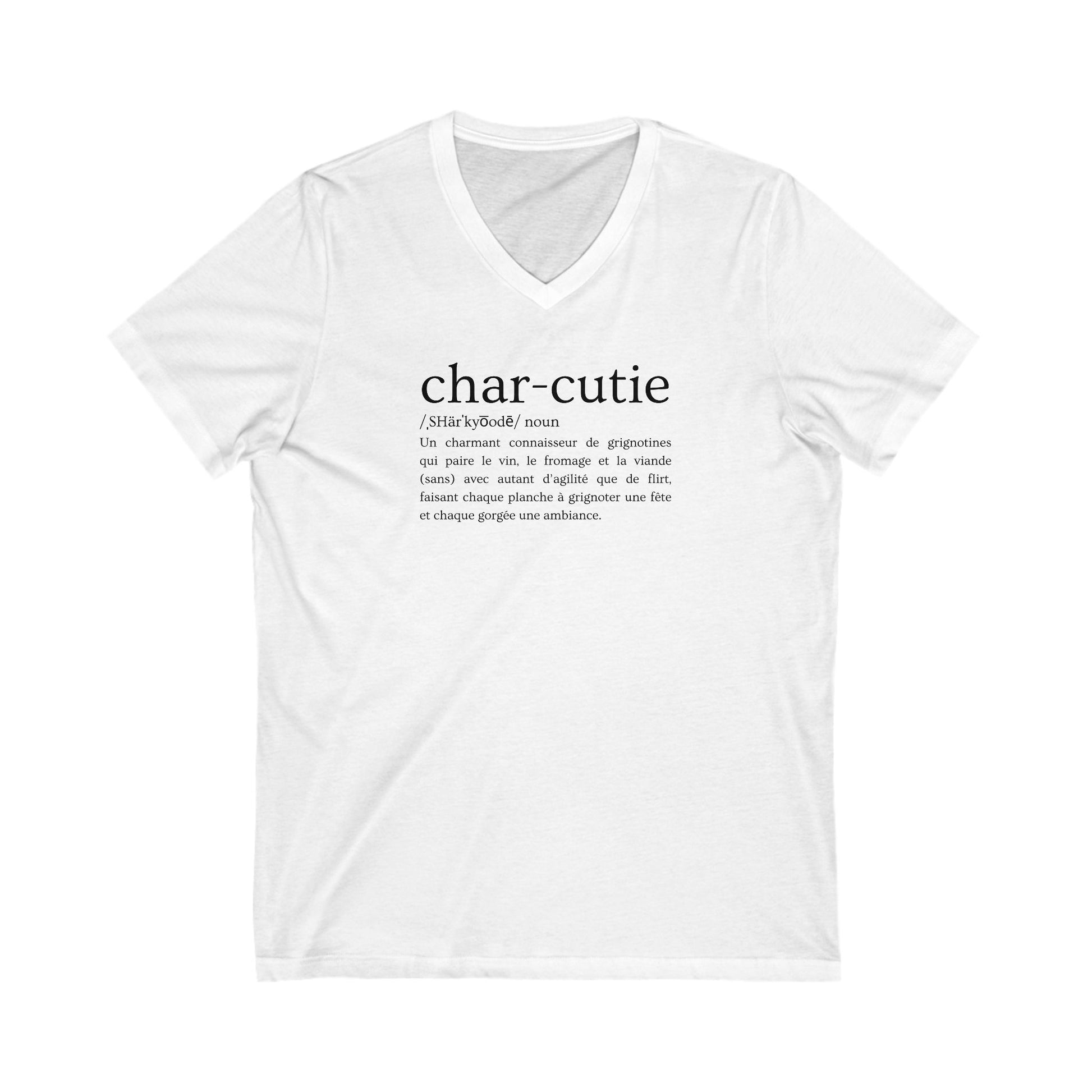 Le t-shirt Char-cutie Col V est un incontournable pour les épicuriens qui aiment autant le style que la gastronomie. Ce design reprend notre définition signature Char-cutie, un clin d’œil amusant et élégant pour les amateurs de vin, de fromage et de charcuterie. En col rond aussi.